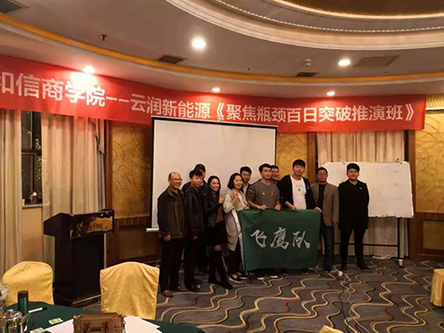 2018年11月3日—4日,云潤新能源針對企業(yè)發(fā)展過程中出現(xiàn)的業(yè)績瓶頸問題請和信商學(xué)院共同進(jìn)行專項研究培訓(xùn)。該培訓(xùn)共持續(xù)兩天一夜,期間商學(xué)院與云潤成員共同梳理業(yè)務(wù)流程、制定考核措施等。